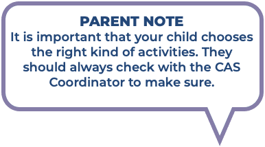 You are probably already doing activities that can count towards your CAS e.g. sports. Check with your CAS Coordinator/Advisor just to make sure these activities fit the IB requirements.